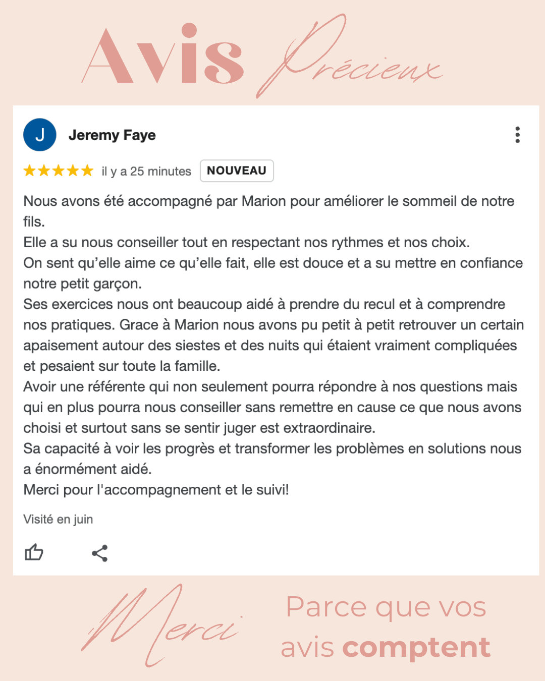 Chaque famille est unique, c’est pourquoi je prends le temps d’écouter vos besoins et je m’attache à vous proposer un accompagnement doux et respectueux.